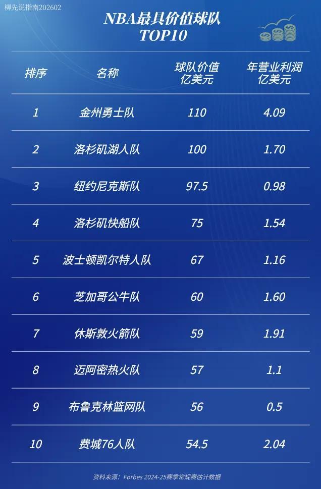 世界杯赛事官方平台-NBA球队年度赚钱王:球队估值110亿美元,年利润相当于两个湖人